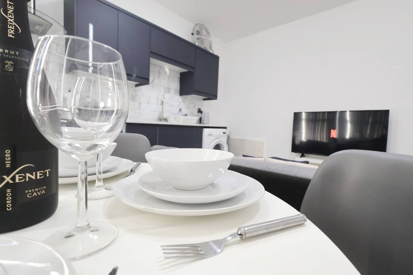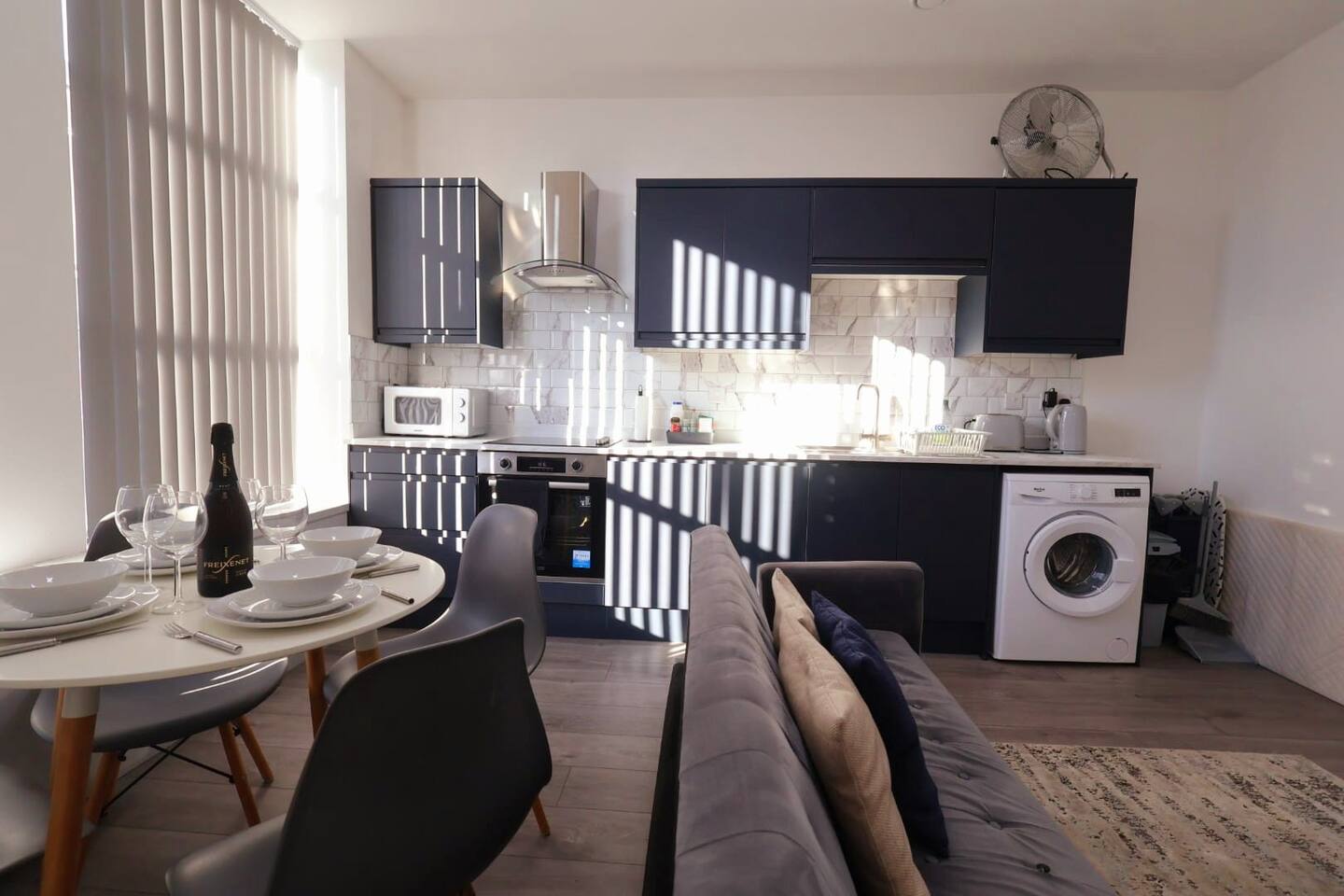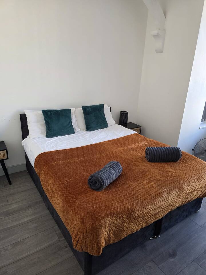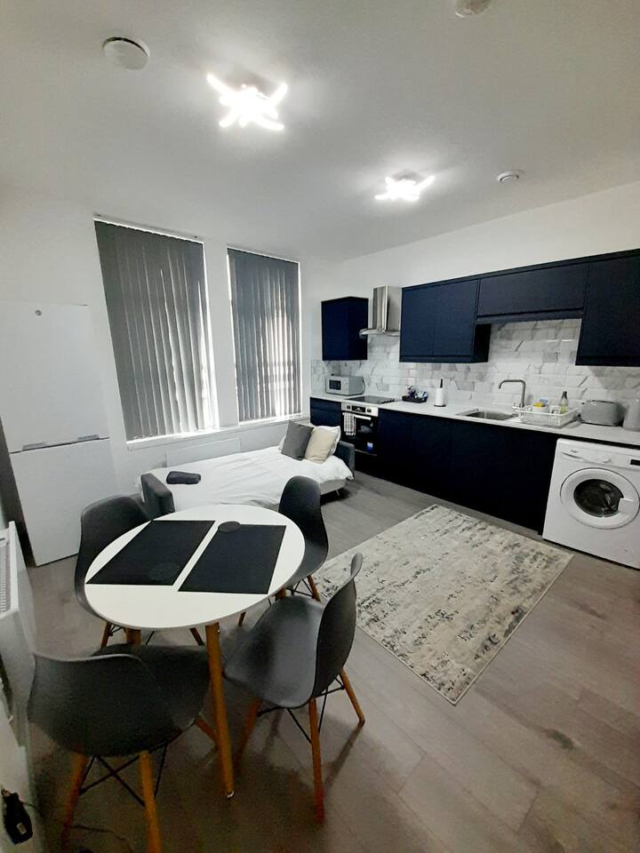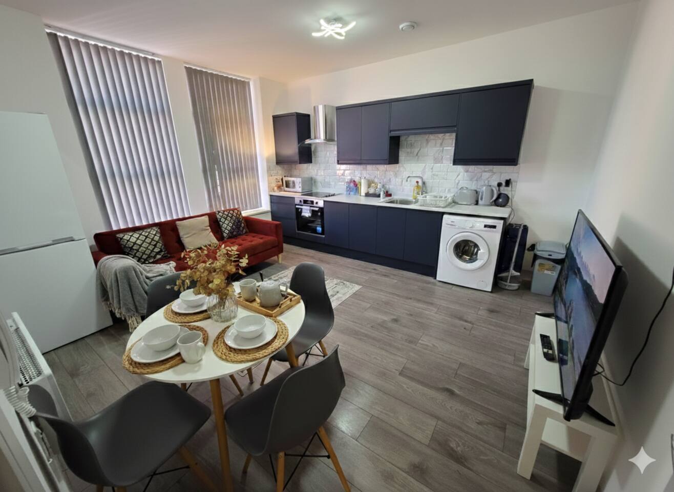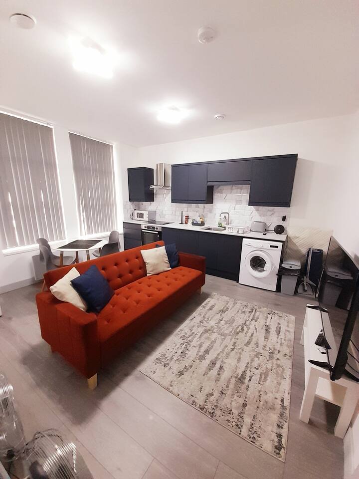 Located on a quiet high street in Kettering, our apartments offer a peaceful retreat from the hustle and bustle of the city. Approximately 5 minutes’ drive from the A14 connecting to the M1 and M6. Near Corby, Market Harborough, Northampton and Rugby. ■ Good-sized bedrooms. Travel cot available for an additional fee 🛏 ■ Kitchen is fully equipped including a washing machine.☕️ ■ Comfortable and modern living/dining area. Dining table for 4 guests only. A 50-inch Smart TV with free access to Netflix, Disney, and Prime. You can connect your games console or entertainment device. 📺 ■ Free Wi-Fi 💻 ■ Free on-street parking 🚘 ■ Patio space perfect for catching the sun on a warm day 🌼 Local area: Local amenities include shops, supermarkets, eateries, post office, coffee shops, bar. Pre-arrival: ● A deposit of up to £150 is payable by card or Airbnb and agreement to our rental agreement must be completed prior to your stay. You will receive a link with details of how to complete this. You will also be asked to provide photo ID in advance of your stay. The deposit is refunded 48 hours after your departure provided there is no damage to the property.